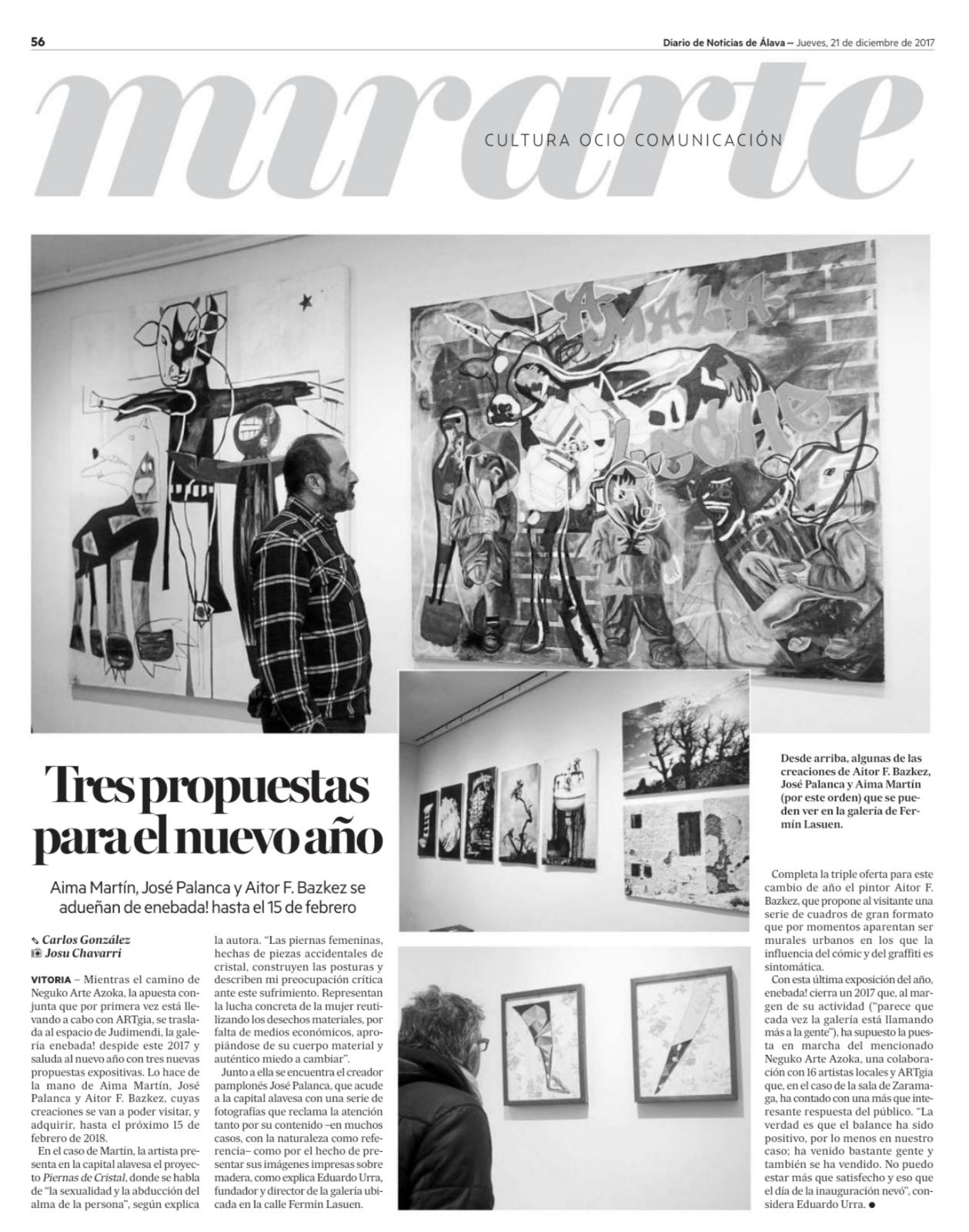 Exposición fin de año 2017 Deja un comentario / Por aimamartin / 22/12/2017 Ver artículo completo en el diario de Álava. Galeria de Arte Enebada Colección de Arte Contemporaneo Piernas de Cristal